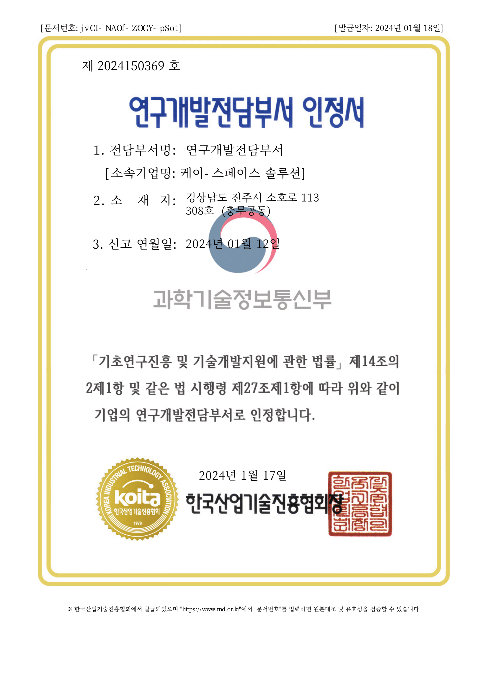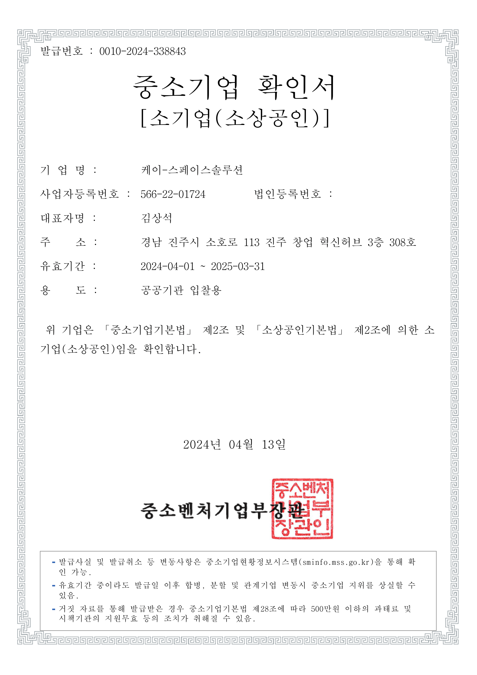 Confirmation of small and medium-sized enterprises